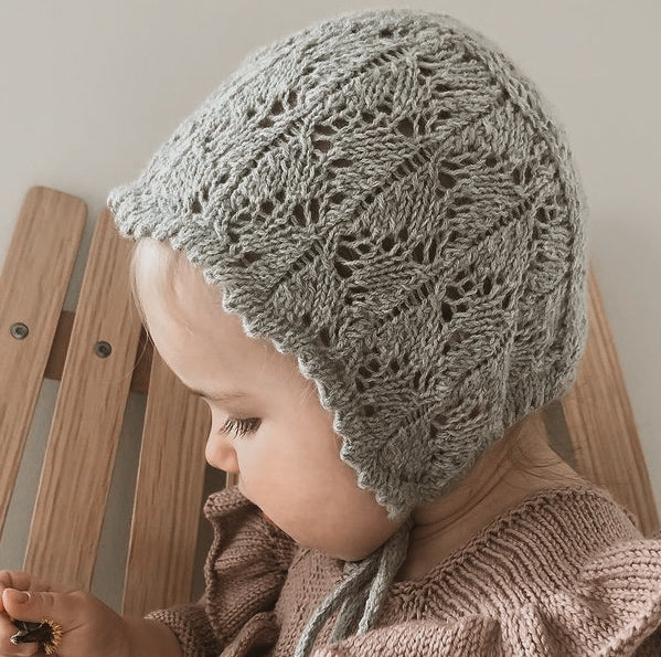 Louise Bonnet ist in einer wunderschönen Spitzenstruktur gestrickt. Durch das luftige Lochmuster eignet sich die Mütze gut für die Sommermonate oder als Accessoire zu einem schönen Outfit. Louises Haube ist in den Größen Frühchen bis 3 Jahre erhältlich.