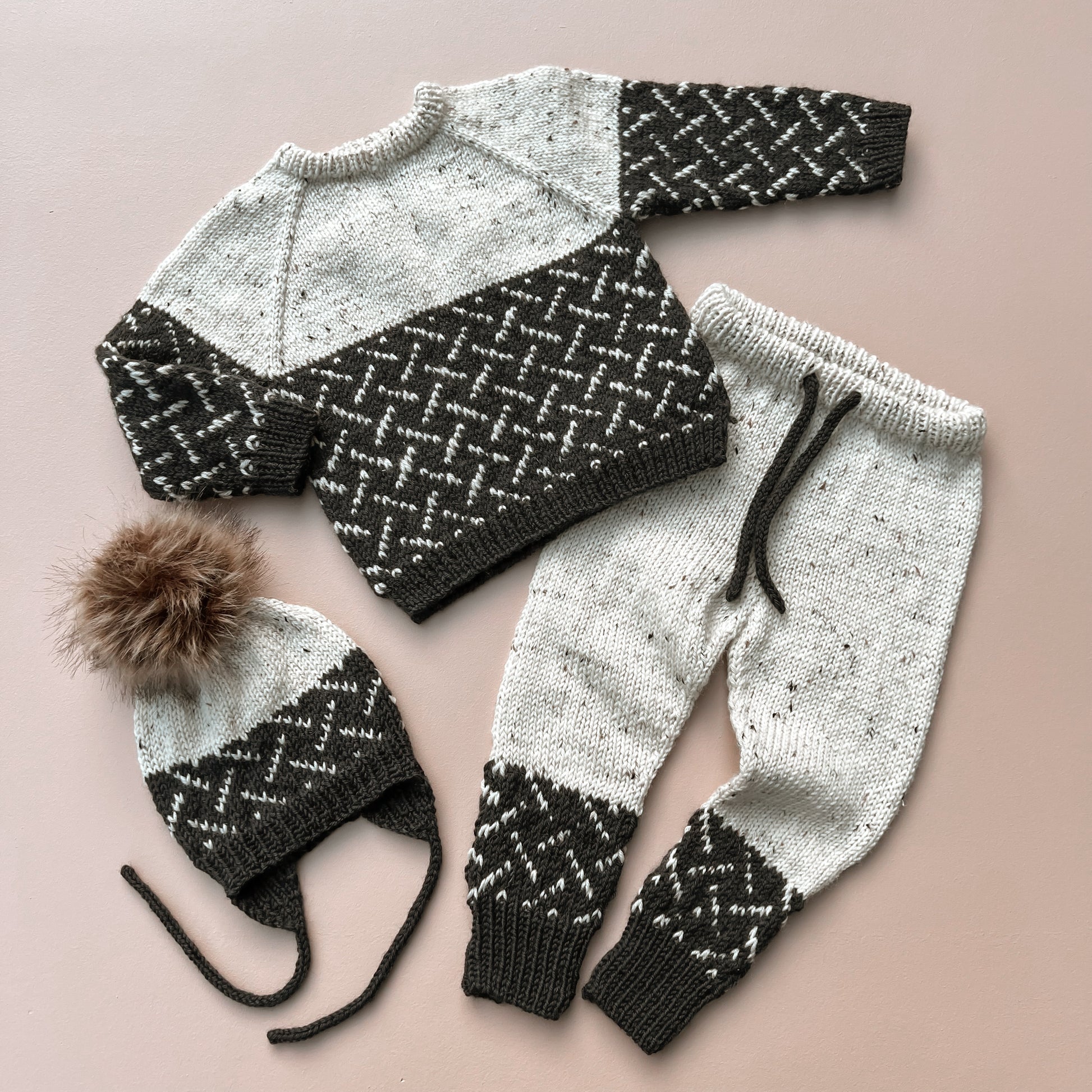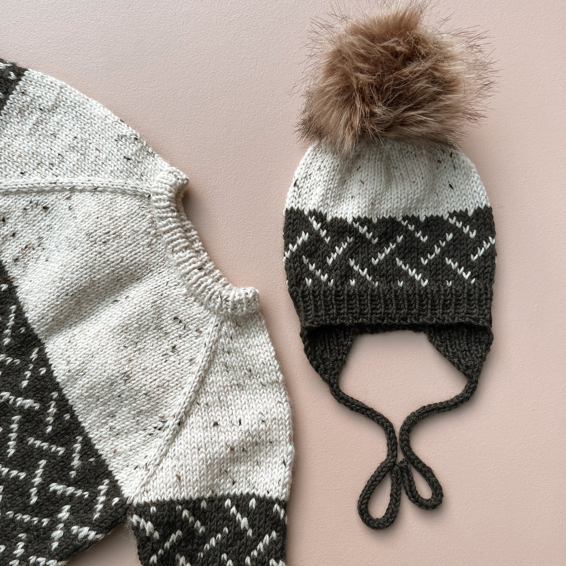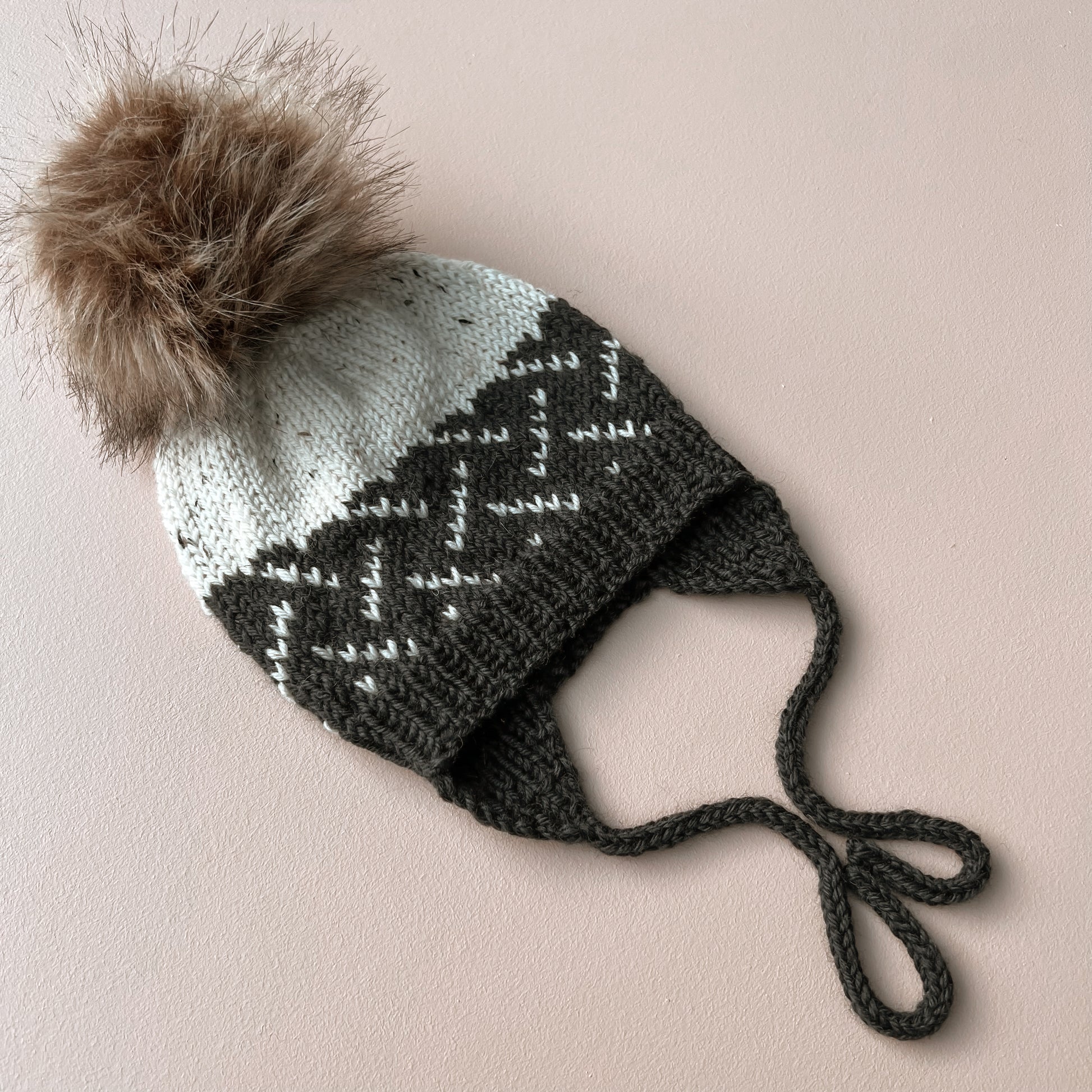 Hedda hat is knitted from the bottom up. In the smaller sizes, you start by making the i-cords and earflaps, which are inserted on the same needle, before casting on stitches between these for the rest of the hat. In the larger sizes, you cast on and start with rib. The bottom of the hat is knitted according to the chart, while the top of the hat is solid color. You can add a pompom to the top of the hat.
