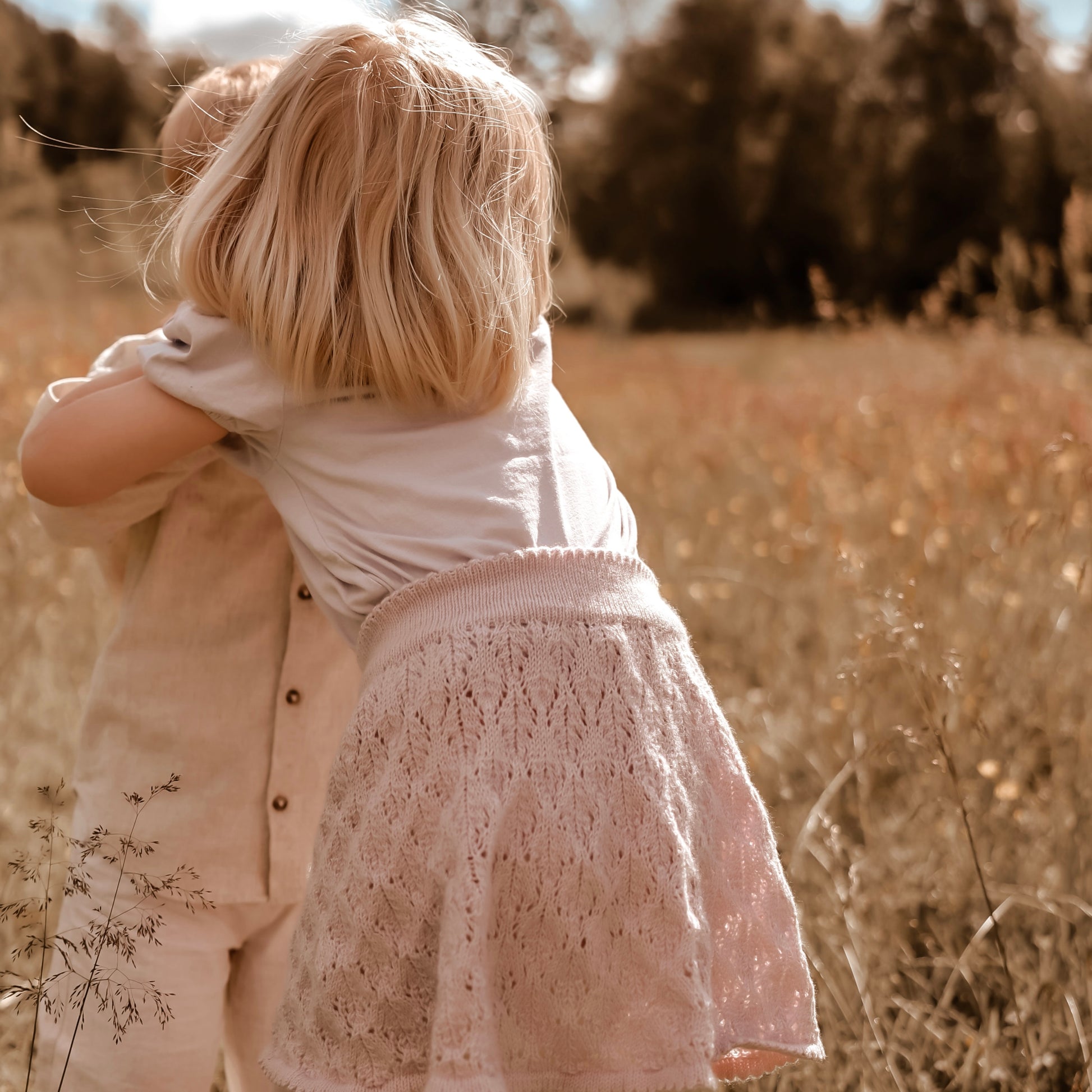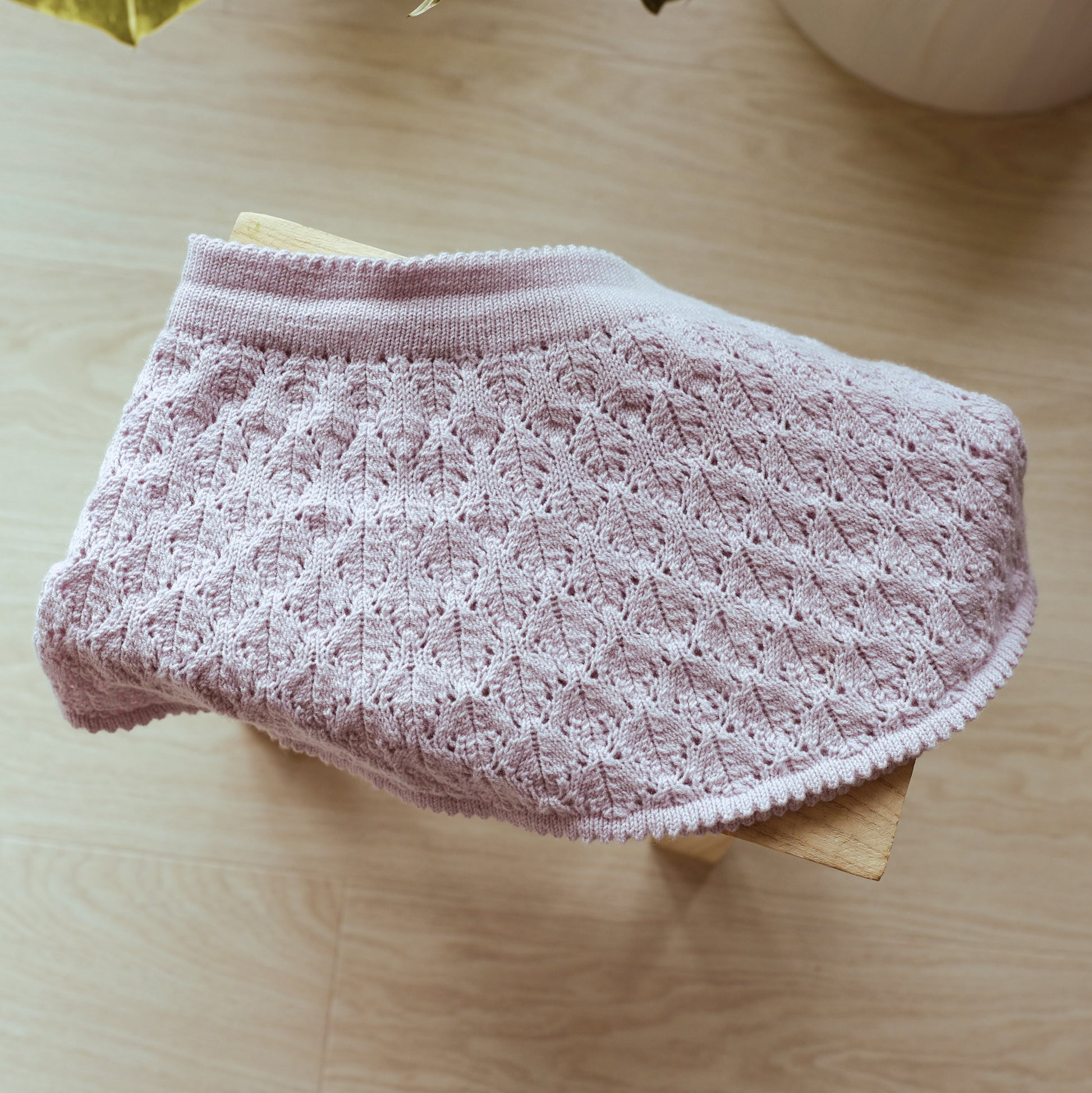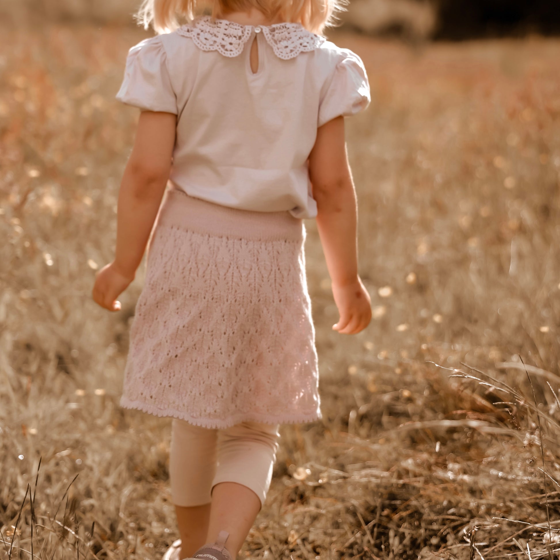Louise skirt junior is knitted from the bottom up and in the round. You start by making a picot edge at the bottom, before the rest of the skirt is knitted in a textured pattern according to the charts. At the top of the skirt a drawstring is knitted and an elastic band is threaded into it to ensure the skirt fits well.